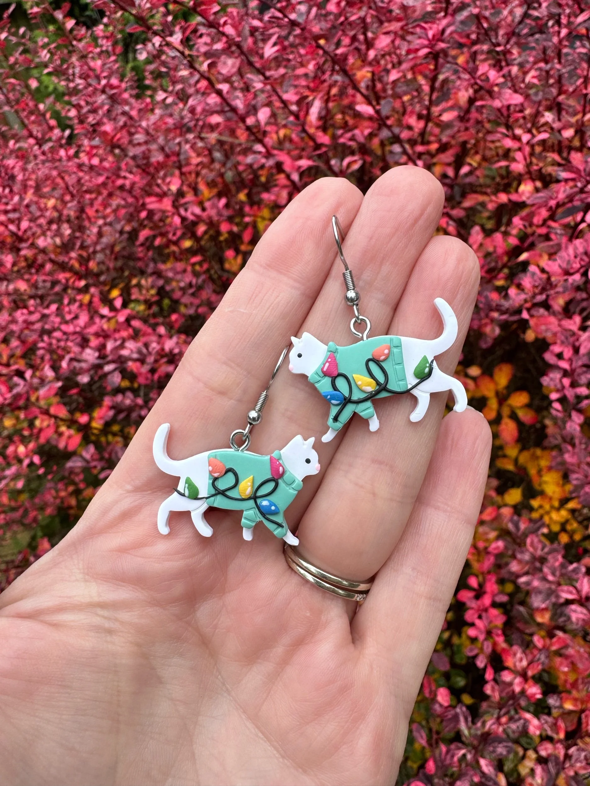 Handmade polymer clay Christmas cats!